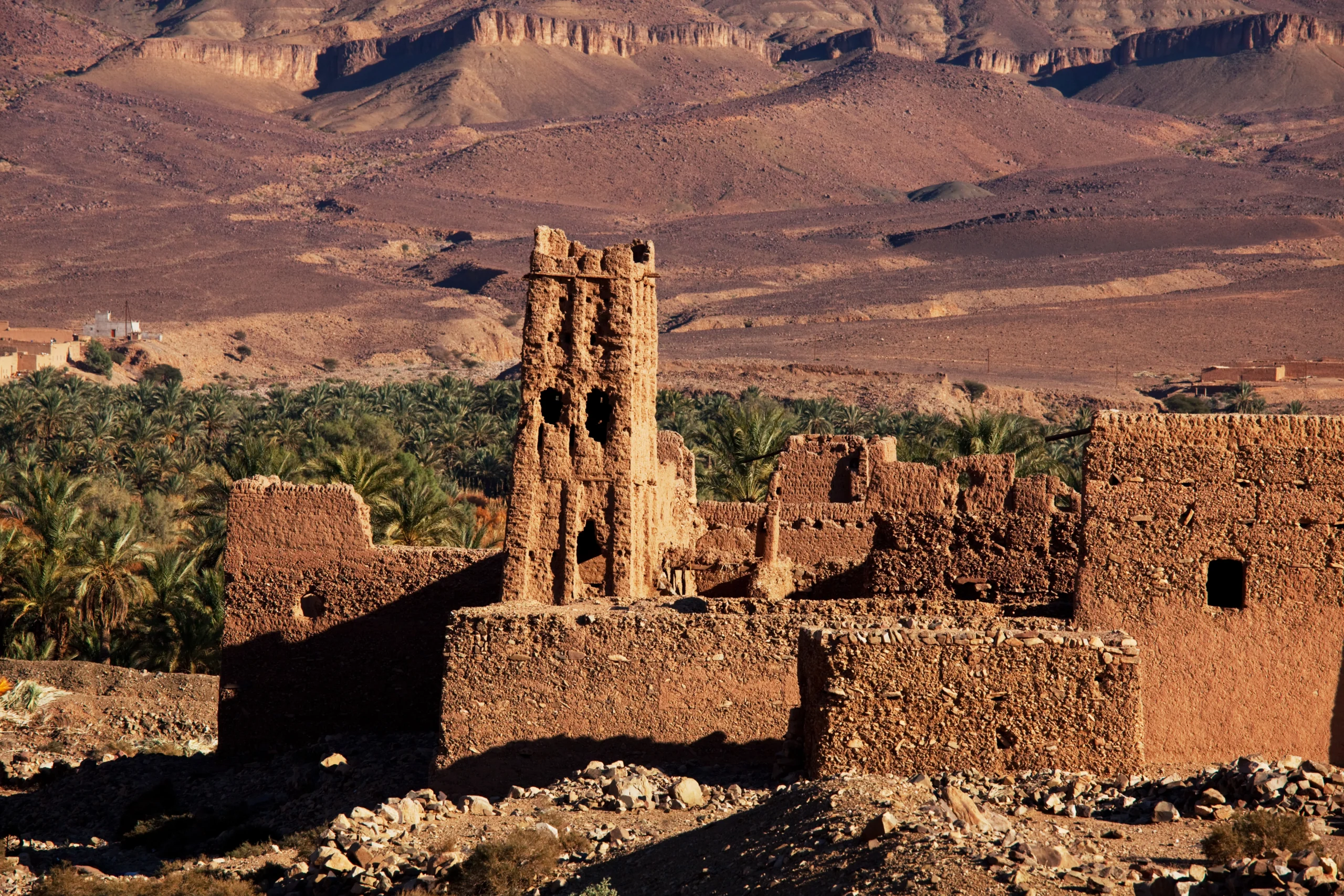 Depart Nkob and travel through the scenic Draa Valley, a fertile oasis with date palms stretching as far as the eye can see. Continue along this picturesque route, passing through Agdz, a town known for its kasbahs and its position as a crossroads between the mountains and the desert.